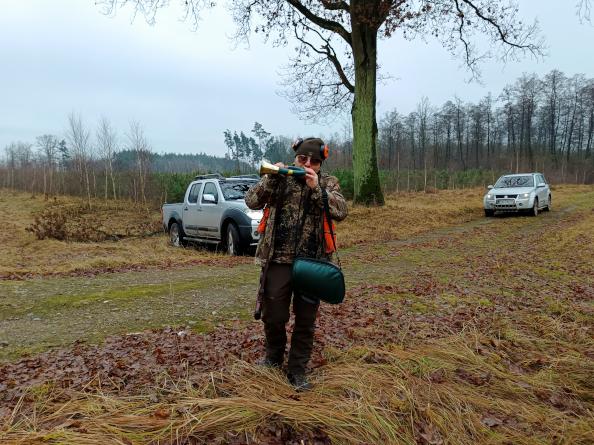 Na koniec polowania po podziękowaniu przez prowadzącego polowanie Kol. Mariusza Giętkowskiego nagance za niemałe poświęcenie w postaci przemoczonych do cna ubrań, wręczono medal hodowcy za jedyny oddany w tym polowaniu zbiorowym strzał.
