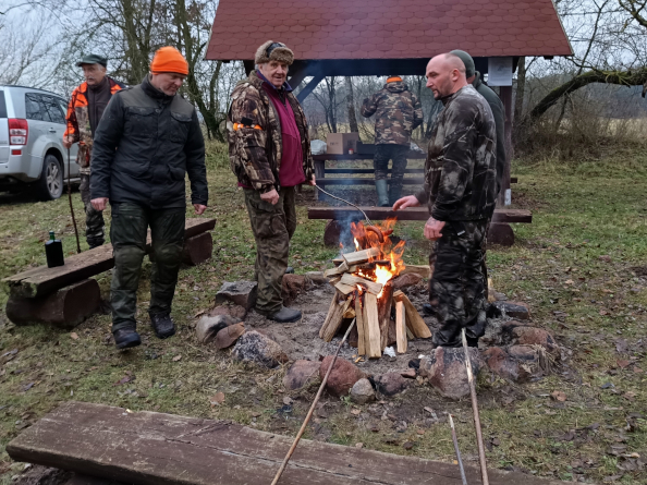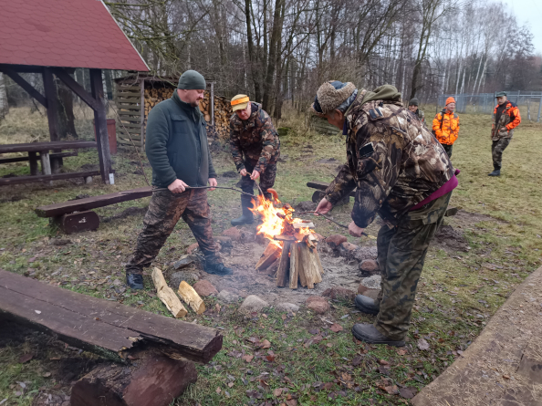 Niemniej każdy z uczestników po polowaniu mógł cieszyć się ciepłem płonącego ogniska i rozkoszować się smakiem pieczonej w nim kiełbasy. A wszystko to okraszone różnymi żartami i szczerym śmiechem.